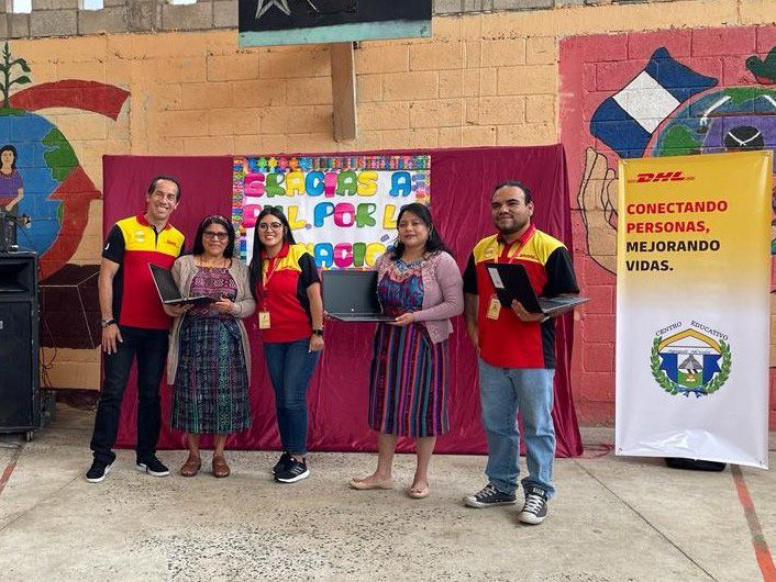 Op 28 juli mocht de school 22 computers en 3 printers in ontvangst nemen. Een donatie van DHL.